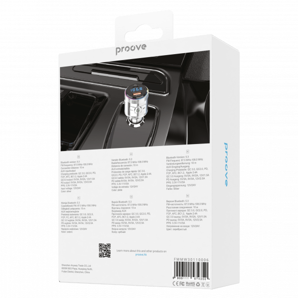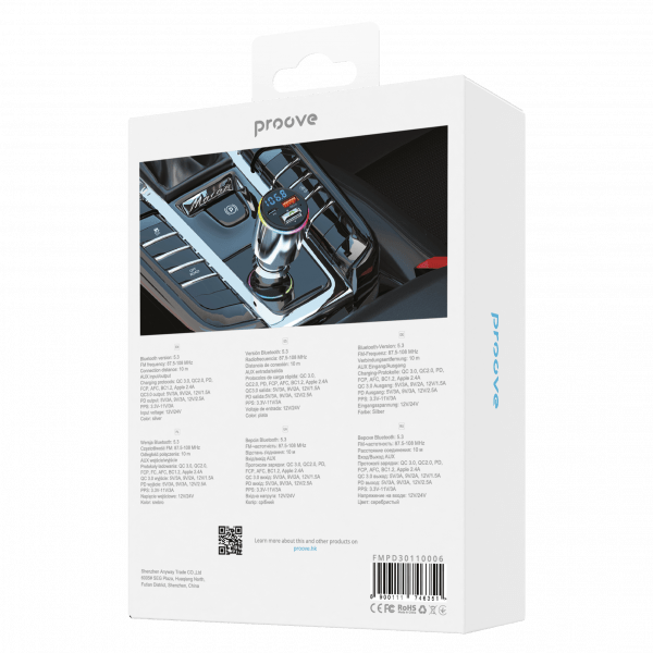 Specificaties: Bluetooth: Bluetooth 5.1 Bedrijfsspanning: 1224V Totaal laadvermogen: 38W Zendfrequentie: 87,5108,0 MHz FMzendbereik : tot 5m Bluetoothbereik:tot 10m Uitgangsspanning QC connector 3.0: (DC3.66.5V/3A, 6.59V/2A, 912V/1.5A) Uitgangsspanning PDconnector: (DC 5V/3A, 9V/2.2A,12V/1.5A) (ondersteunt snel PDopladen gebruikt in de nieuwste iPhones) HDmicrofoon