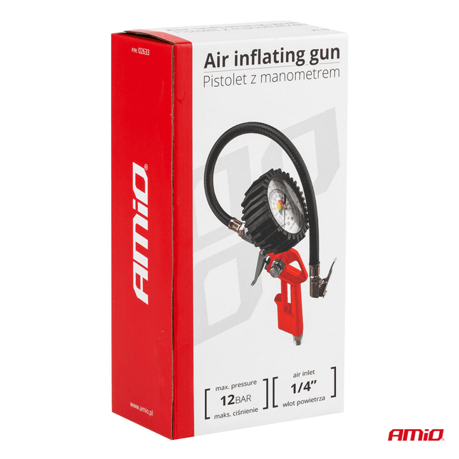AMiO Mechanisch Luchtpistool Koppelstuk met Drukmeter voor Auto's Motorfietsen Fietsen Rood