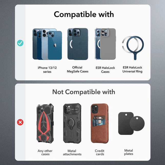 Compatibiliteit: elke telefoon met een metalen plaat of een geschikte behuizing eraan bevestigd