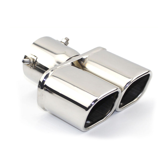 Dubbele Uitlaat Chrome Recht 60mm Kopstuk / Eindstuk Vierkant Met deze Dubbele Uitlaat Kopstuk / Eindstuk RVS geeft u uw auto een sportieve look. Dit koppelstuk is eenvoudig te bevestigen en is universeel* voor veel automerken. Niet tevreden met de orginele uitlaat? Dan is dit de perfecte en eenvoudigste oplossing. Makkelijk te bevestigen door het aandraaien van 3 moertjes. *De diameter van dit product is niet geschikt voor elke uitlaat. Het kan voorkomen dat het koppelstuk een te kleine diameter heeft. Kenmerken Makkelijk universeel te monteren Geeft sportieve look