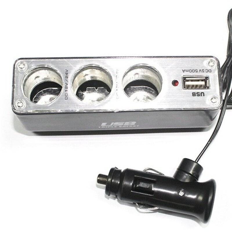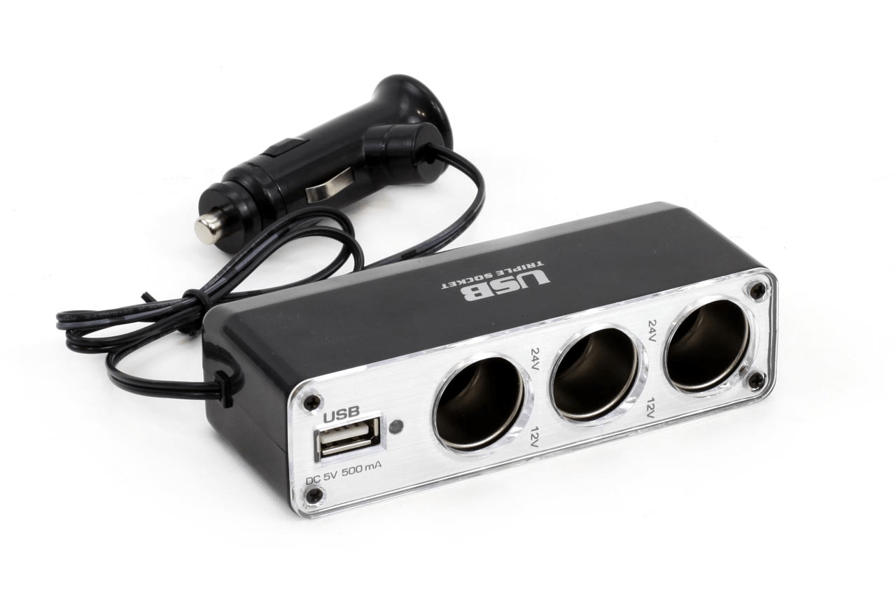 • Transformeert één aansluiting naar drie sigarettenaanstekers en een USBpoort
