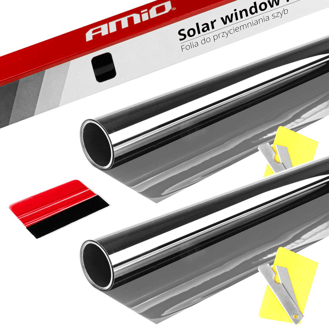 AMiO Auto Raamfolie Tint Vinyl Zwart 75x300cm (60%) zwarte Ramenfolie 2 stuks voor Zonwering en Privacy met Strijkpas (set)