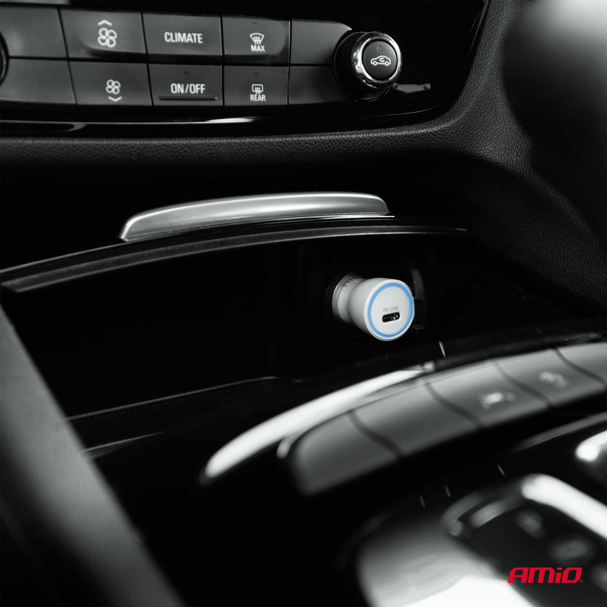 AMiO Autolader Telefoon USB-C 20W 12/24V Wit