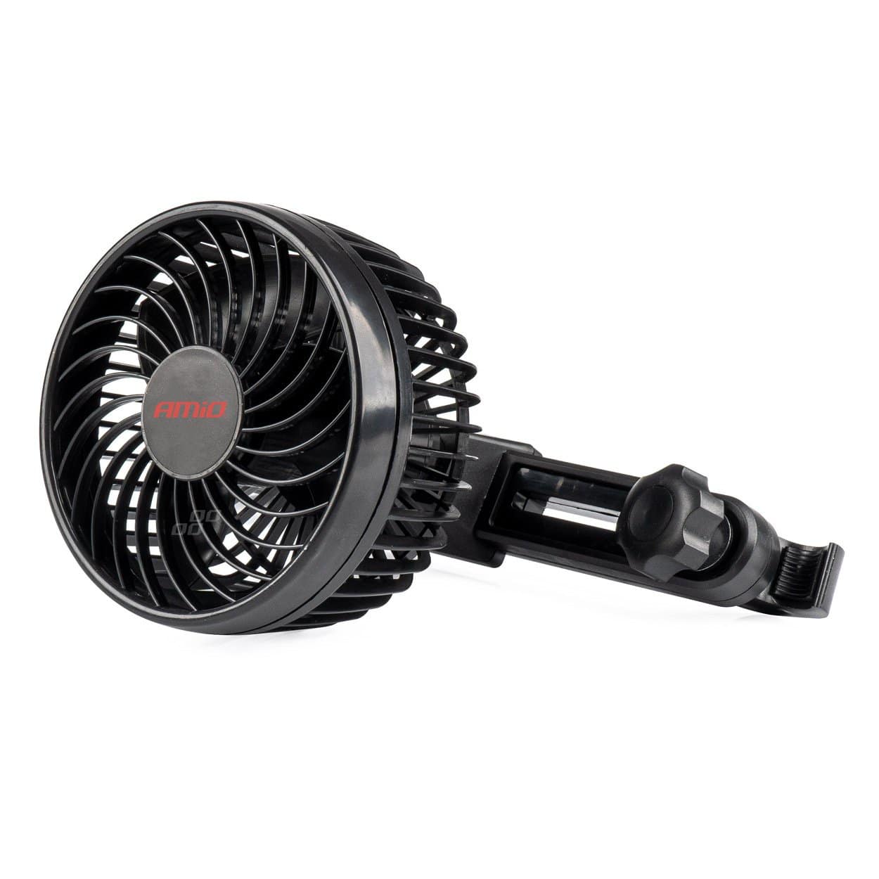 AMiO Autoventilator voor Hoofdsteun met USBoplader Zwart (5x10cm) 12V