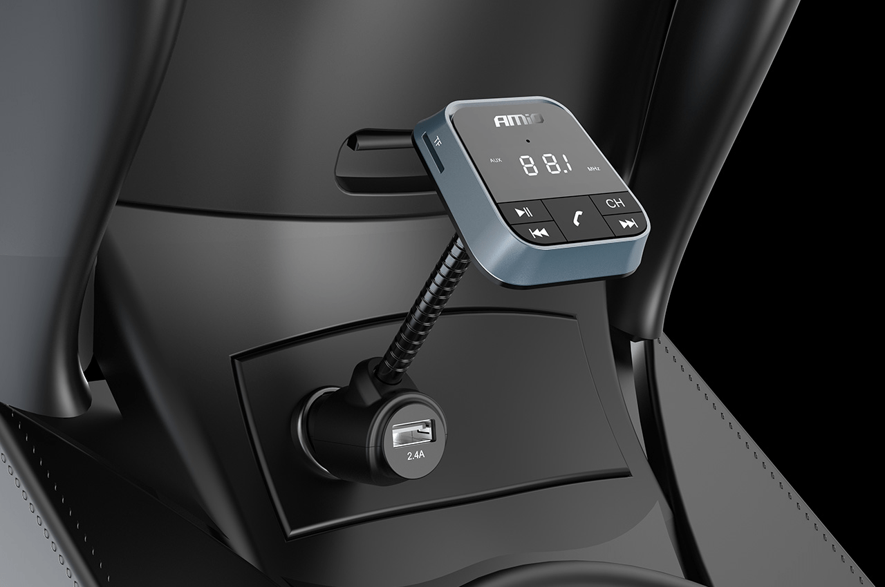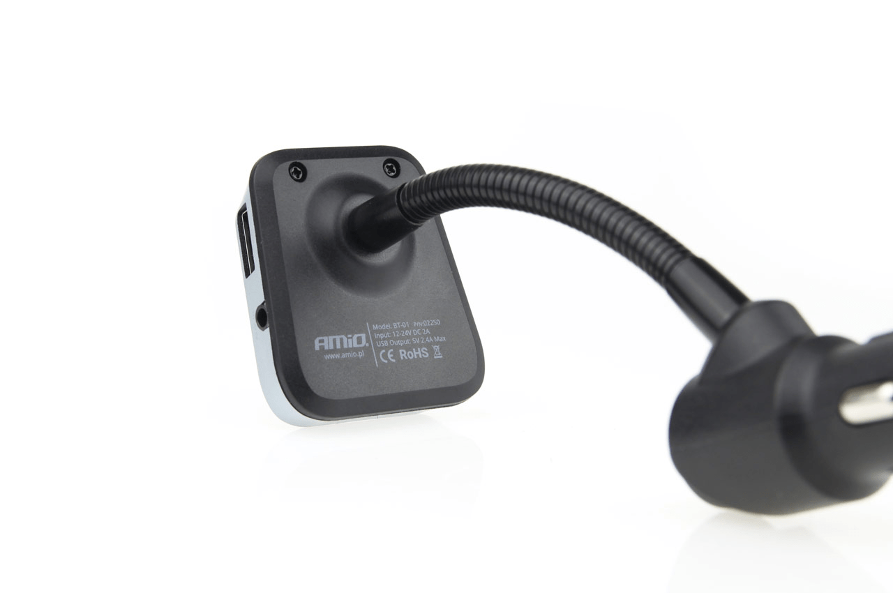 AMiO Bluetooth Muziek FM Transmitter Handsfree Bellen met USB-A Lader 2.4A (BT-01) Zwart
