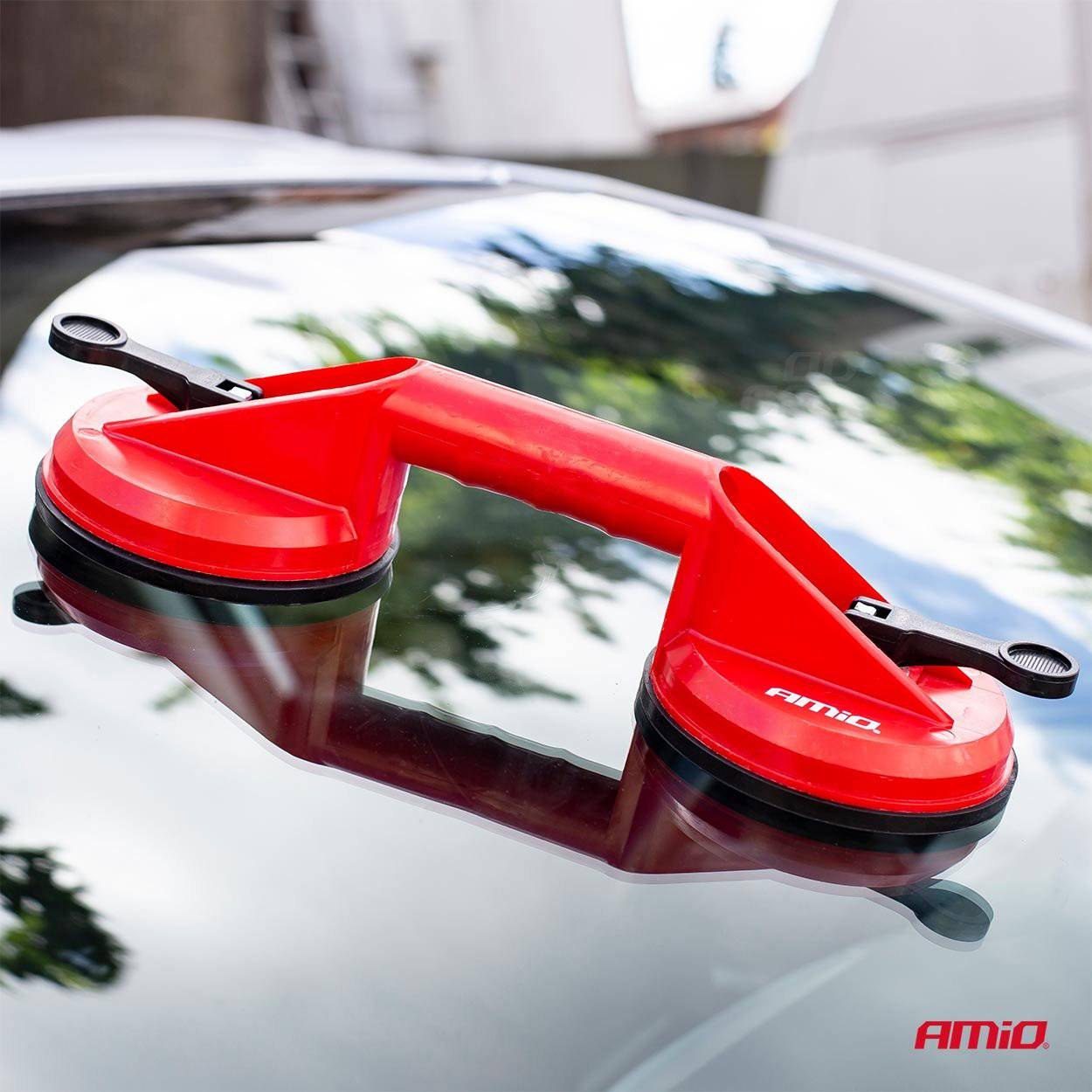 AMiO DualGrip Glass Master Dubbele Zuignap Vacuüm Glasdrager met Klem Rood