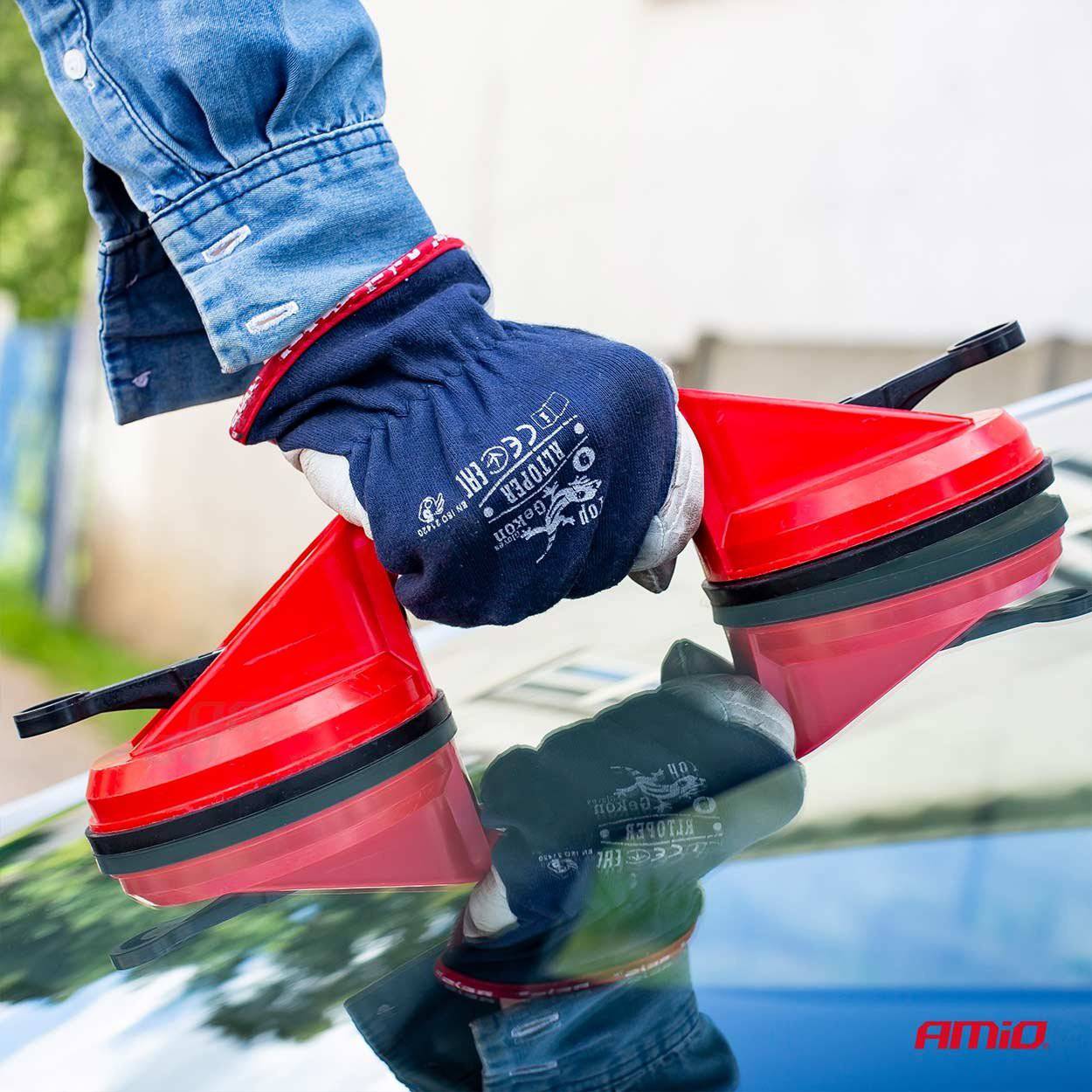 AMiO DualGrip Glass Master - Dubbele Zuignap Vacuüm Glasdrager met Klem - Rood