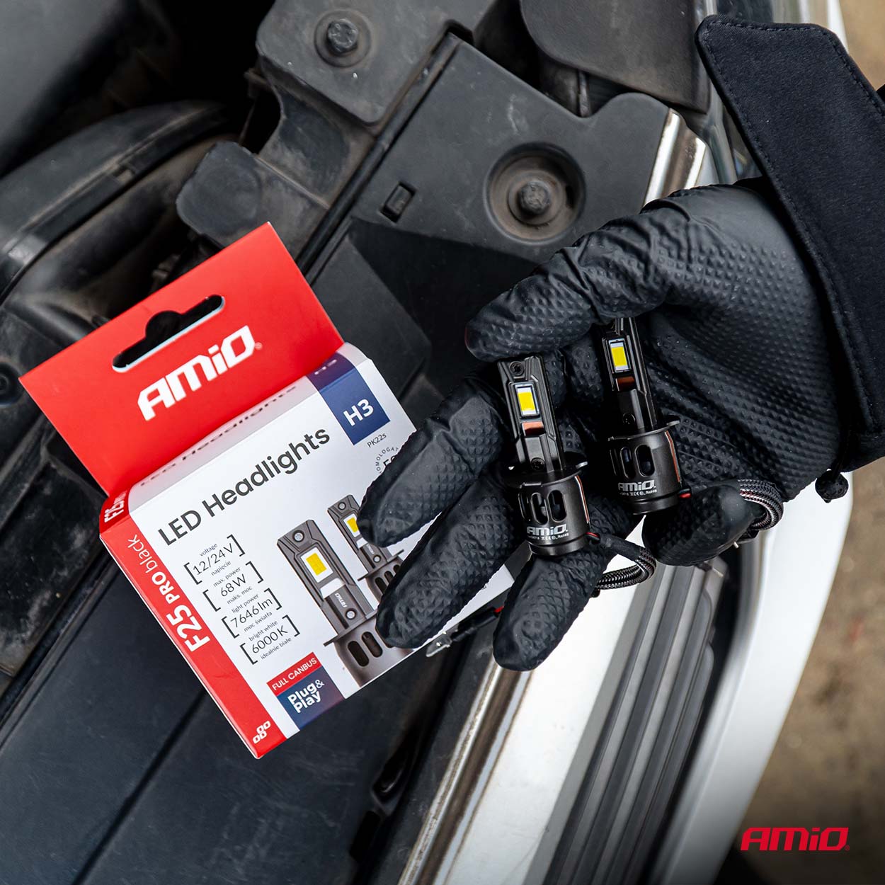 AMiO F25 PRO BLACK FULL CANBUS H3 – 68W 6000K Wit 12V/24V - Hoge Helderheid