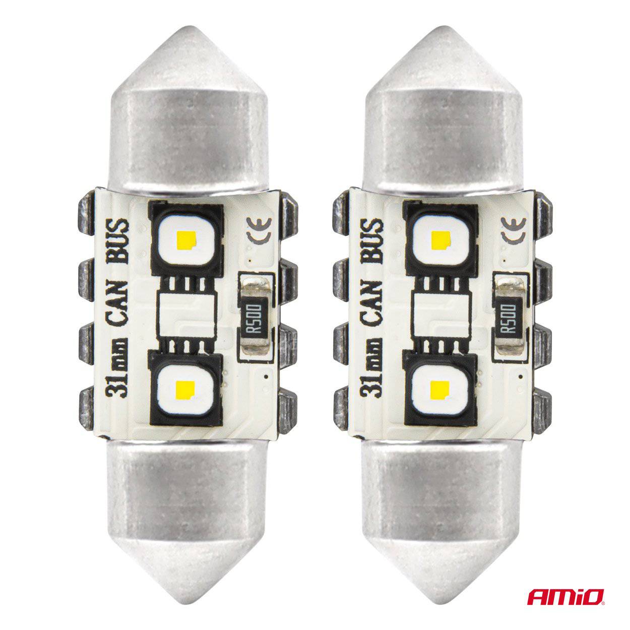 AMiO LED CANBUS lampen 12SMD Festoon C5W 3838 31mm Wit 12/24V