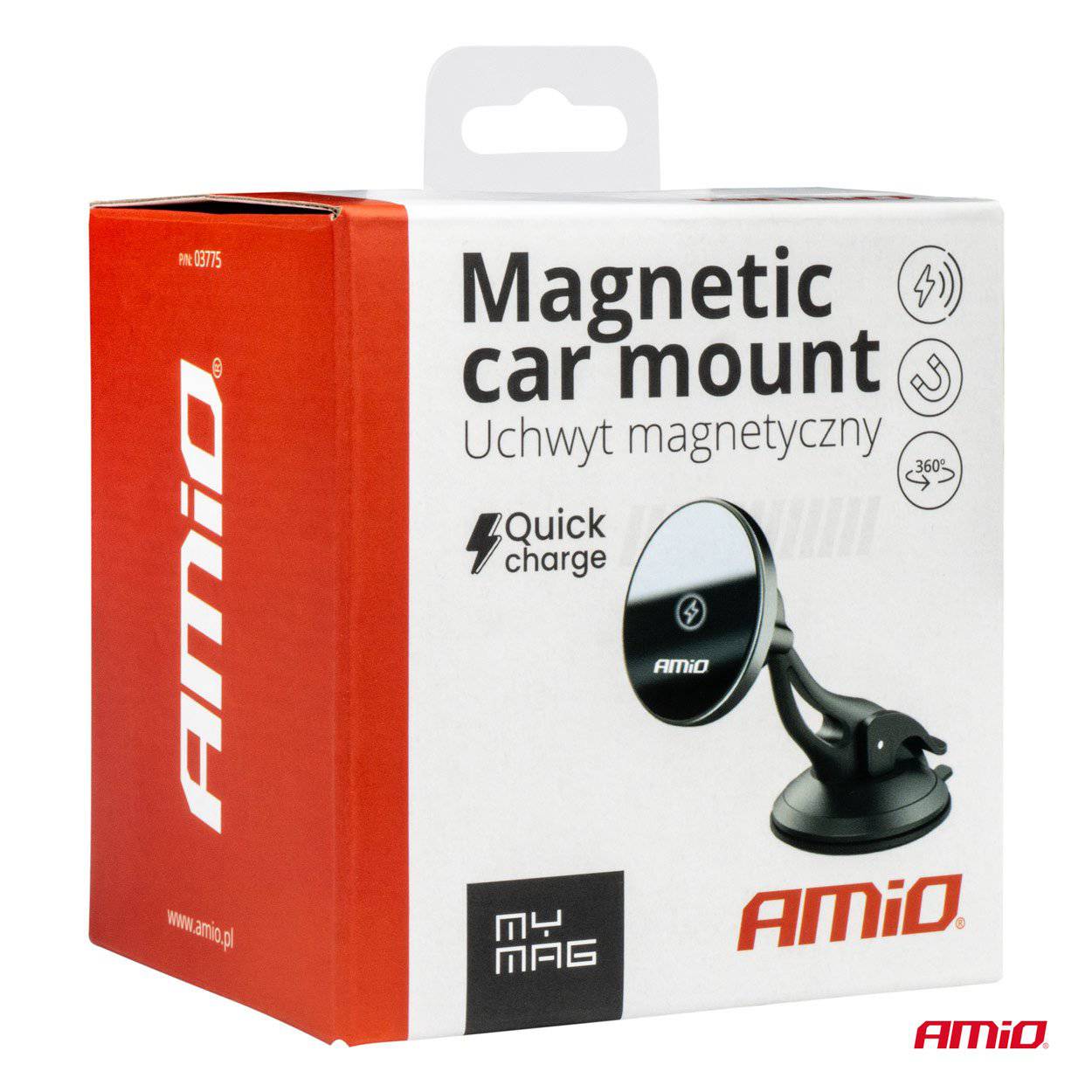 AMiO Magnetische Telefoonhouder met 15W Qi Draadloze Oplader en MagSafe Verstelbare Arm en Zuignap Zwart