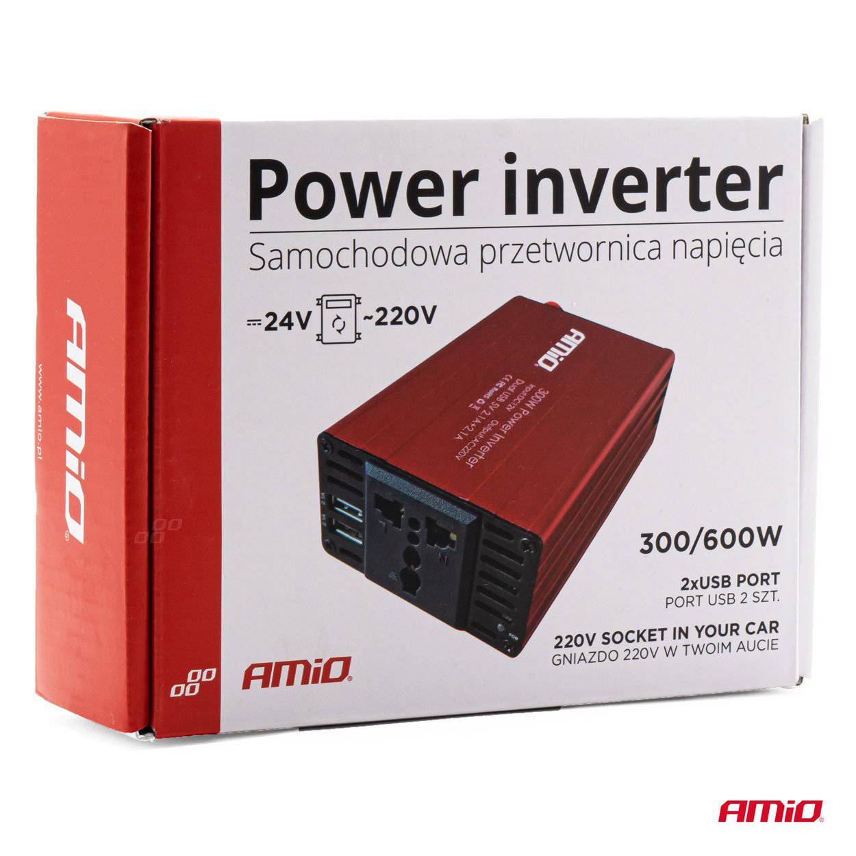 AMiO Power Inverter 24V/230V 300W/600W 2xUSB PI04 - Draagbare Auto Spanningsomvormer
