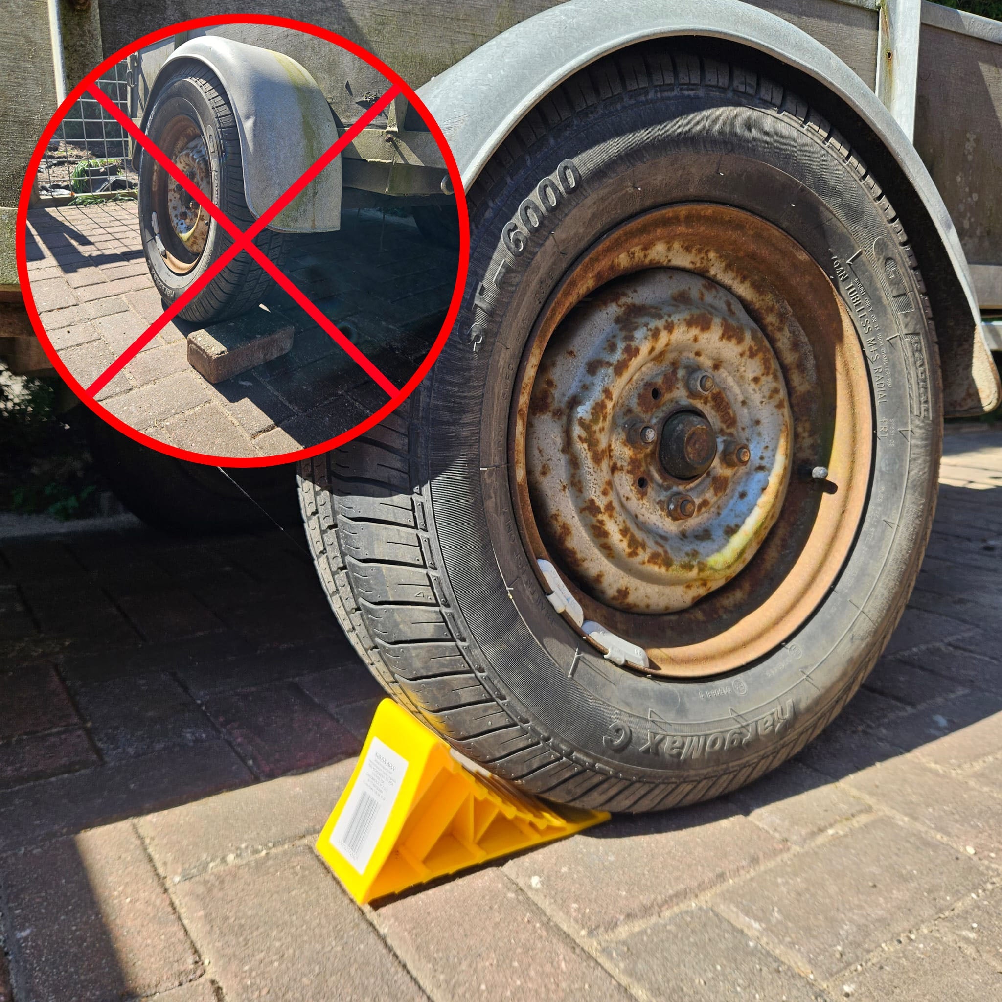 AMiO Universele Wielkeg Wielblok Klem Bandenstopper Rolstopper Kunststof Geel