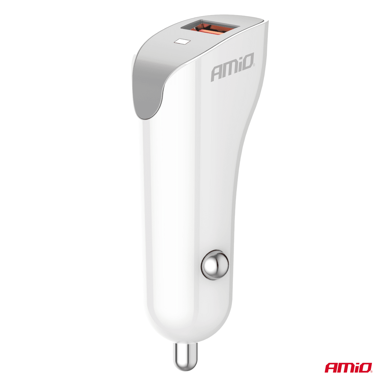 AMiO USB-A Autolader Telefoon 2.1A 12/24V Wit