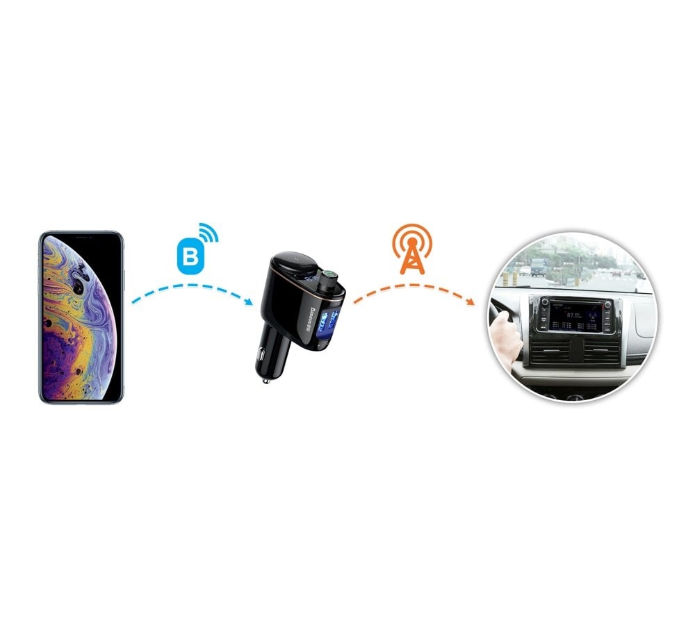 Baseus Bluetooth Muziek FM Transmitter Autolader 2x USB 3.4A Zwart