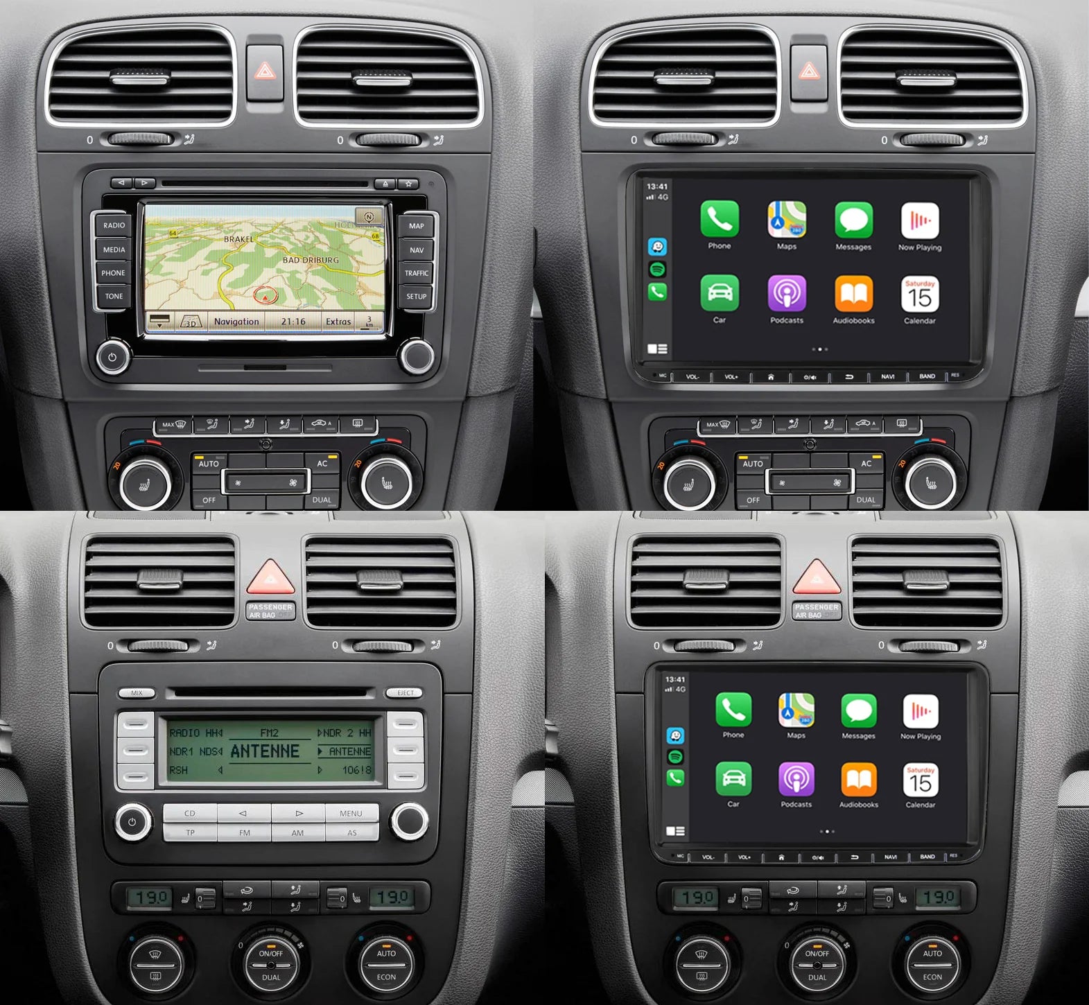 CarPlay & Android Auto Radio voor VW Golf 5/6, Polo, Jetta, Passat, Touran, Tiguan, Leon, Octavia, Sharan – GPS Navigatie & Touchscreen – Inbouwen / Inbouwservice / Installatie