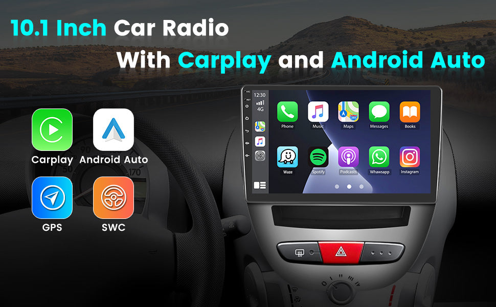 CarPlay & Android Auto Scherm voor Citroën C1, Toyota Aygo, Peugeot 107 (2005-2014) – Draadloos Multimedia Touchscreen, GPS Navigatie – Inbouwen / Inbouwservice / Installatie