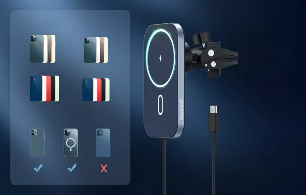 Choetech Magsafe 15W Draadloze Oplader Autohouder voor iPhone 12 / 12 mini / 12 Pro Max / 12 Pro Zwart