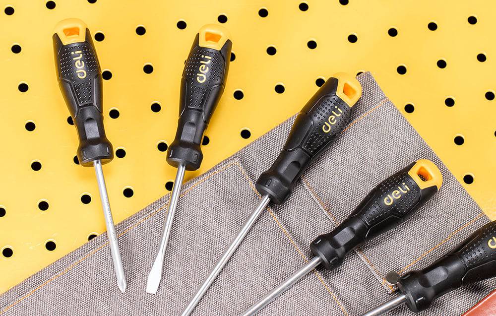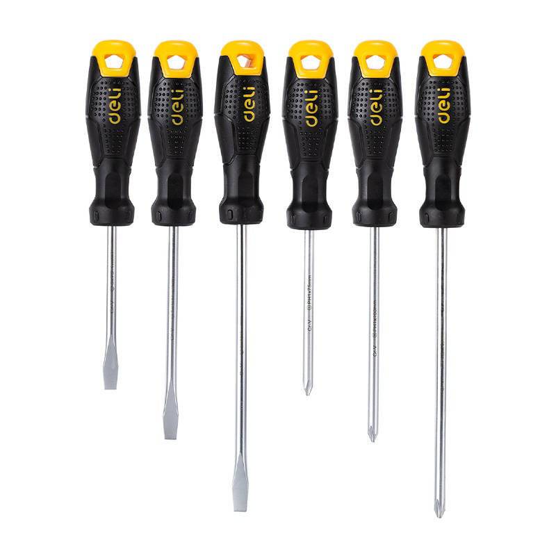 Deli Schroevendraaierset 6-delig met Magneet [Gereedschap - Tools EDL620006] (Zwart en Geel)