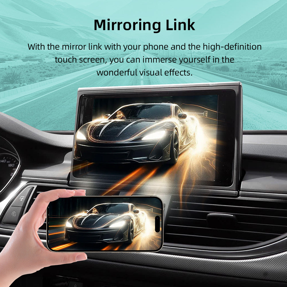 Upgrade het originele Audi RMC-infotainmentsysteem van je A6 C7 of A7 naar draadloze CarPlay en Android Auto zonder het scherm te vervangen. Met deze decoder box module installeer je eenvoudig een slimme en moderne connectiviteitsoplossing waarmee je kunt navigeren, streamen, bellen en berichten verzenden via Siri of Google Assistant. Alles werkt draadloos via AirPlay en Miracast, zonder ingewikkelde installatie of codering.