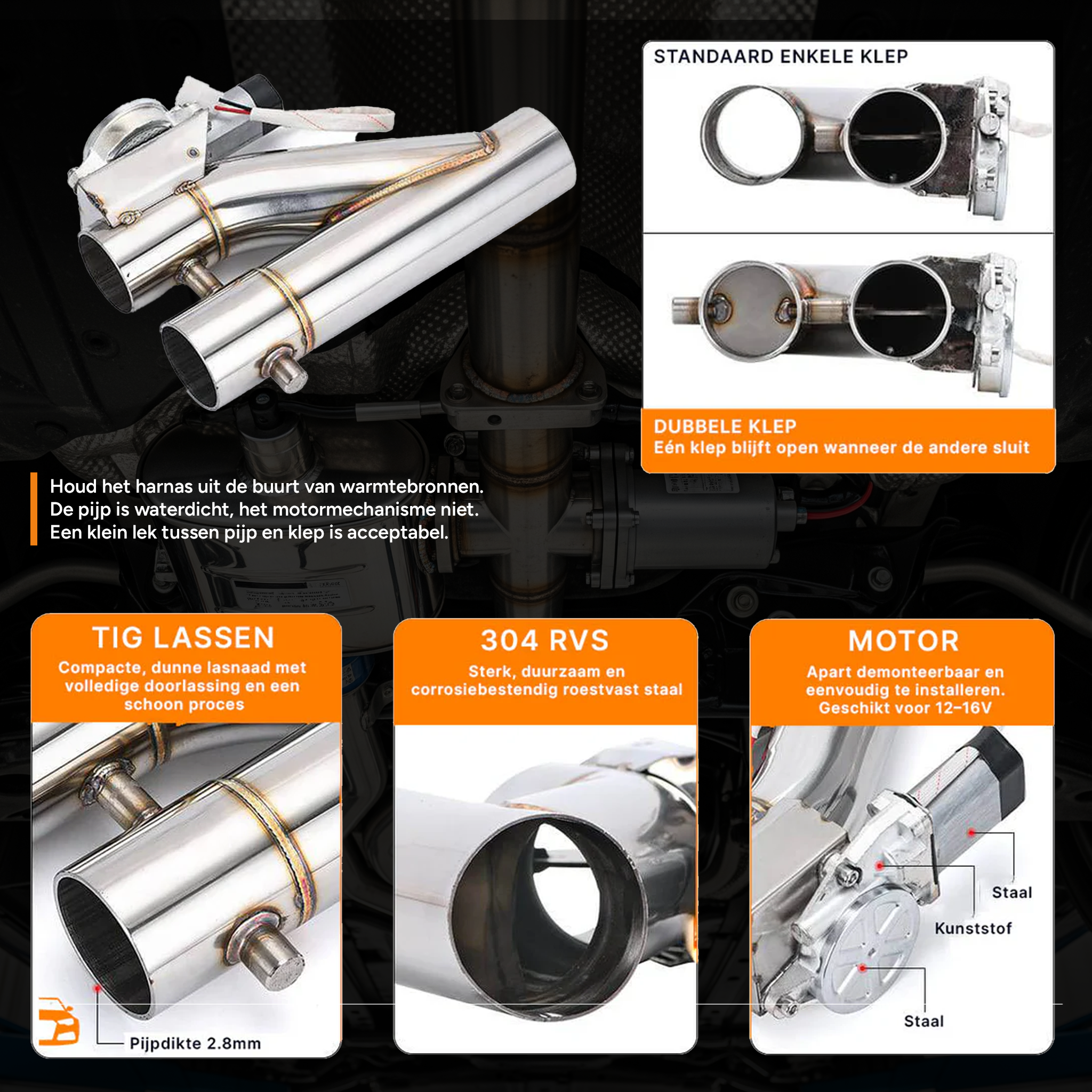 1 x Elektrisch uitlaatsysteem met dubbele klep;