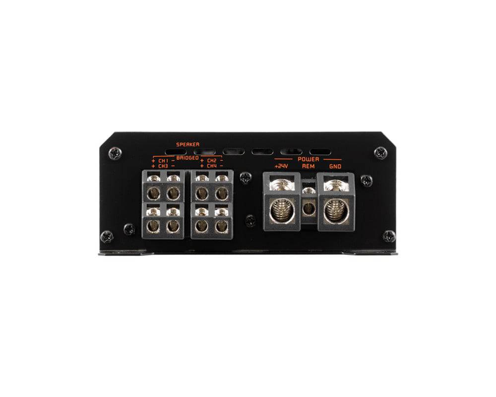 De GAS TFP 70.4 24V is een compacte en lichte 4kanaals versterker die speciaal is ontworpen om luidsprekers in vrachtwagens en andere 24volt voertuigen van stroom te voorzien. Het compacte ontwerp maakt deze versterker zeer gemakkelijk te monteren in kleine compartimenten, maar hij ziet er ook goed uit, dus waarom zou je hem verbergen?