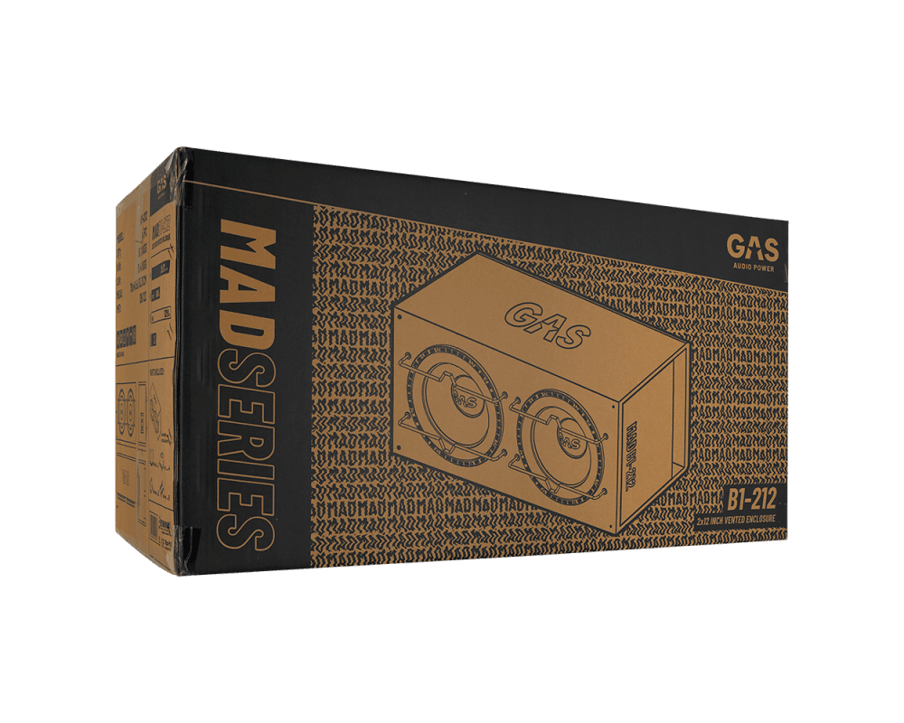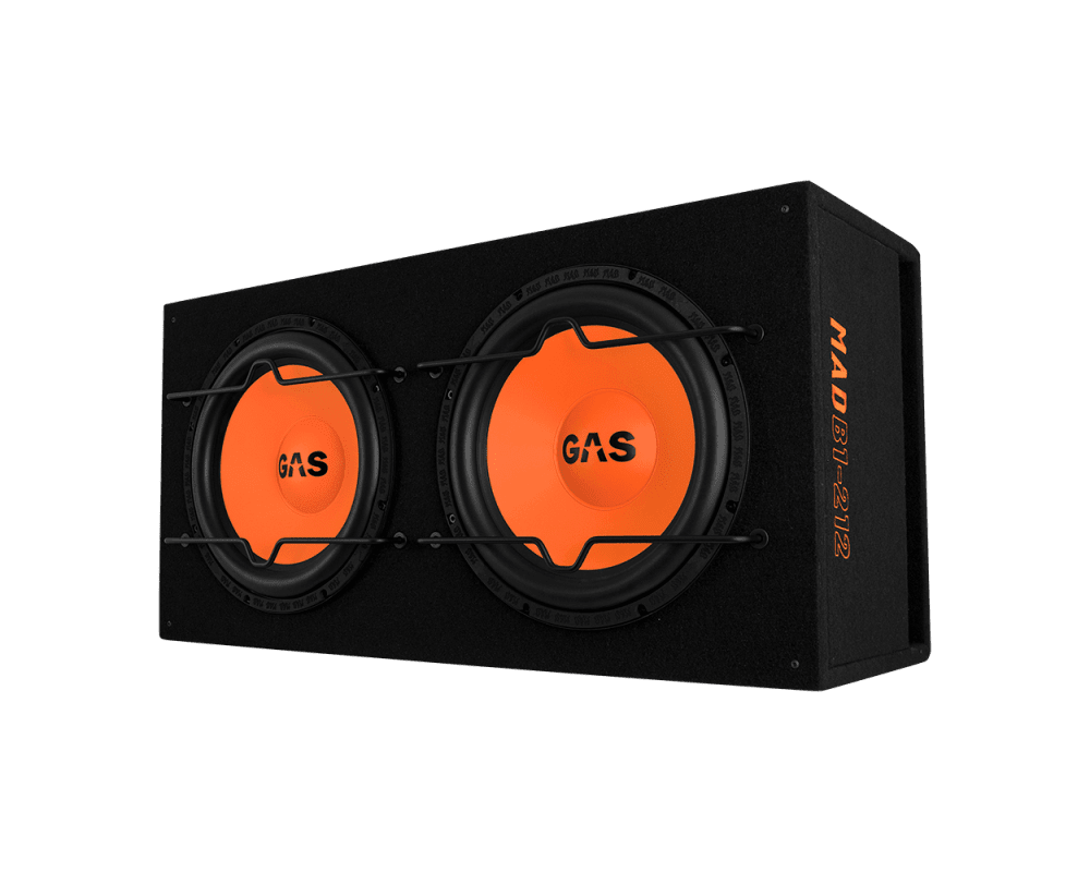 Gas Audio Power Gas Mad Level 1 Loaded Enclosure 2x12" voor Auto Geluidssystemen en Hoogwaardige Geluidskwaliteit