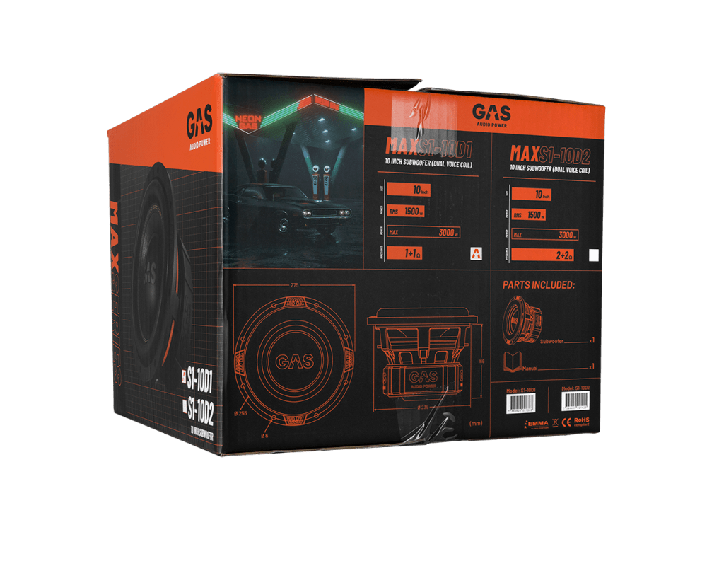 Gas Audio Power Gas Max Level 2 Subwoofer 10" 2x1 Ohm voor Auto Geluidssystemen en Hoogwaardige Geluidskwaliteit