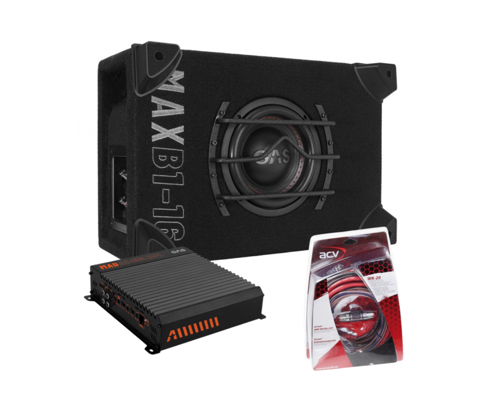 Gas Audio Power Gas Max Subwoofer Set Max B1-16 + Mad A2-600.1dfl + Wk-20 voor Auto Geluidssystemen en Hoogwaardige Geluidskwaliteit