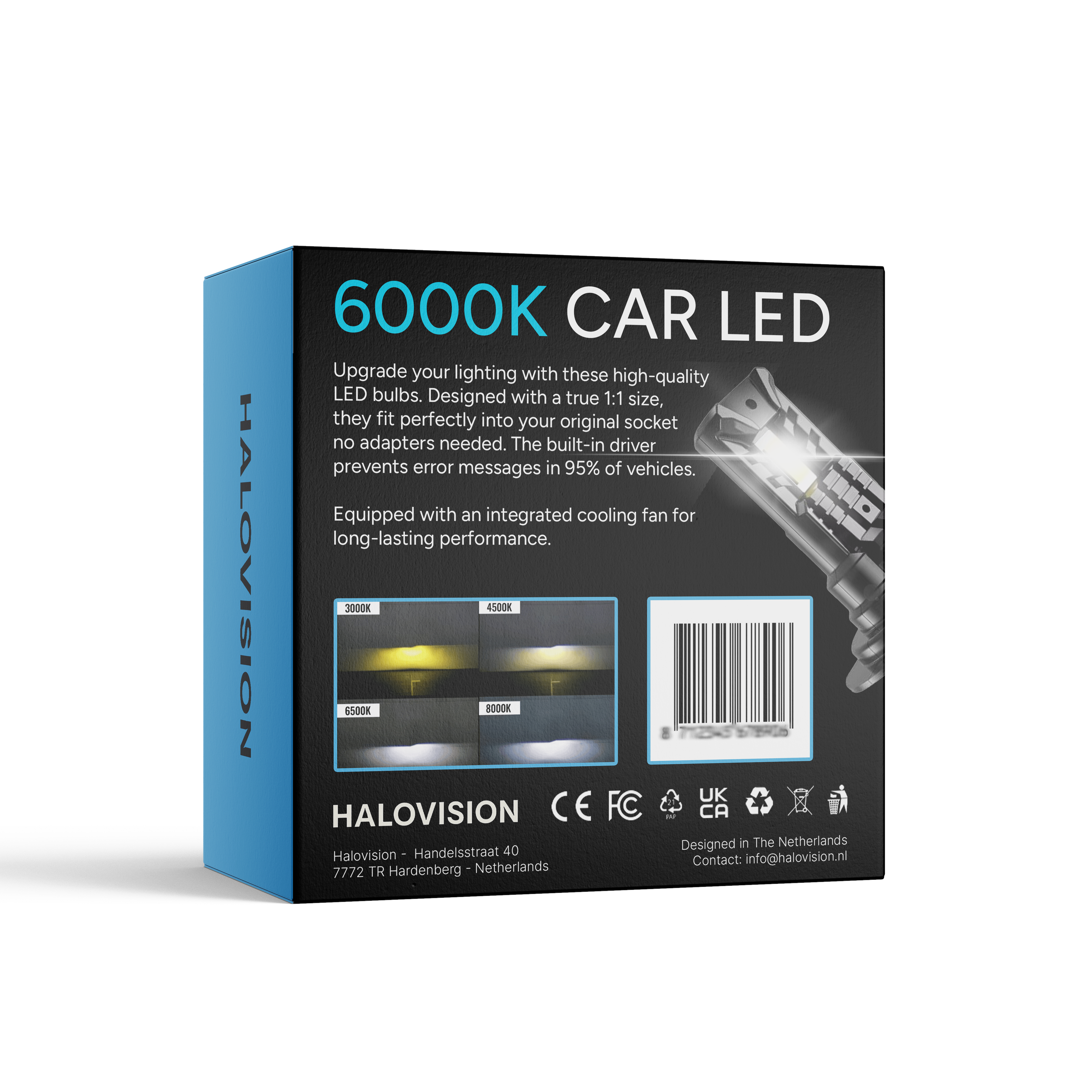 Deze ultrakrachtige H7 LED koplampen van HaloVision zijn dé oplossing voor slecht zicht tijdens nachtelijke ritten. Met maar liefst 30000 lumen per set en een heldere 6000K witte lichtbundel, ervaar je tot 800% meer helderheid dan standaard halogeenlampen. Dankzij de geavanceerde Canbus-technologie zijn foutmeldingen verleden tijd en zijn deze lampen geschikt voor 99,99% van de voertuigen. De ingebouwde turboventilator voorkomt oververhitting en zorgt voor een lange levensduur van meer dan 80.000 uur. Met een 360 graden lichtbundel zonder dode hoeken ben je altijd goed zichtbaar. Plug & Play installatie zonder polariteitsproblemen maakt het vervangen eenvoudig en snel.