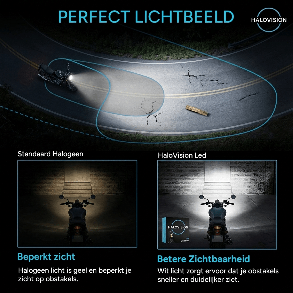HaloVision lampen zijn voorzien van het Europese CE keurmerk en intern getest op een correct en goed afgesteld lichtbeeld. Dit helpt bij een veilige lichtbundel met minder strooilicht en een betere zichtbaarheid in het verkeer.