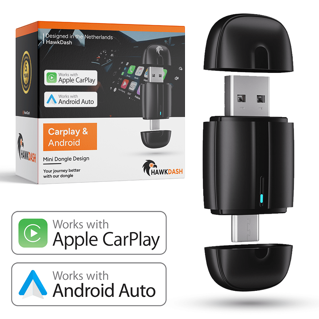 Ervaar het gemak van draadloos rijden – bestel vandaag nog de HawkDash Mini 2-in-1 Car Dongle en geef je auto direct een slimme upgrade!
