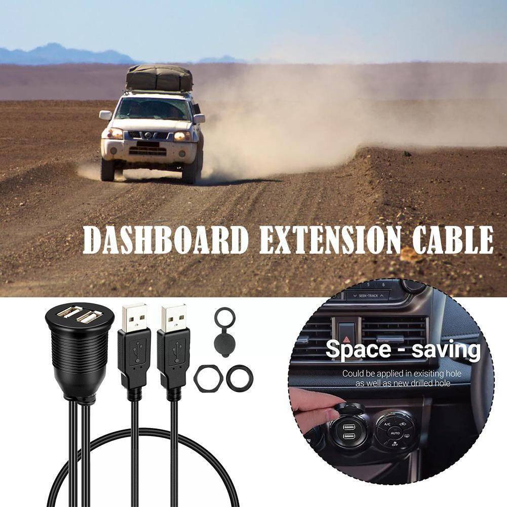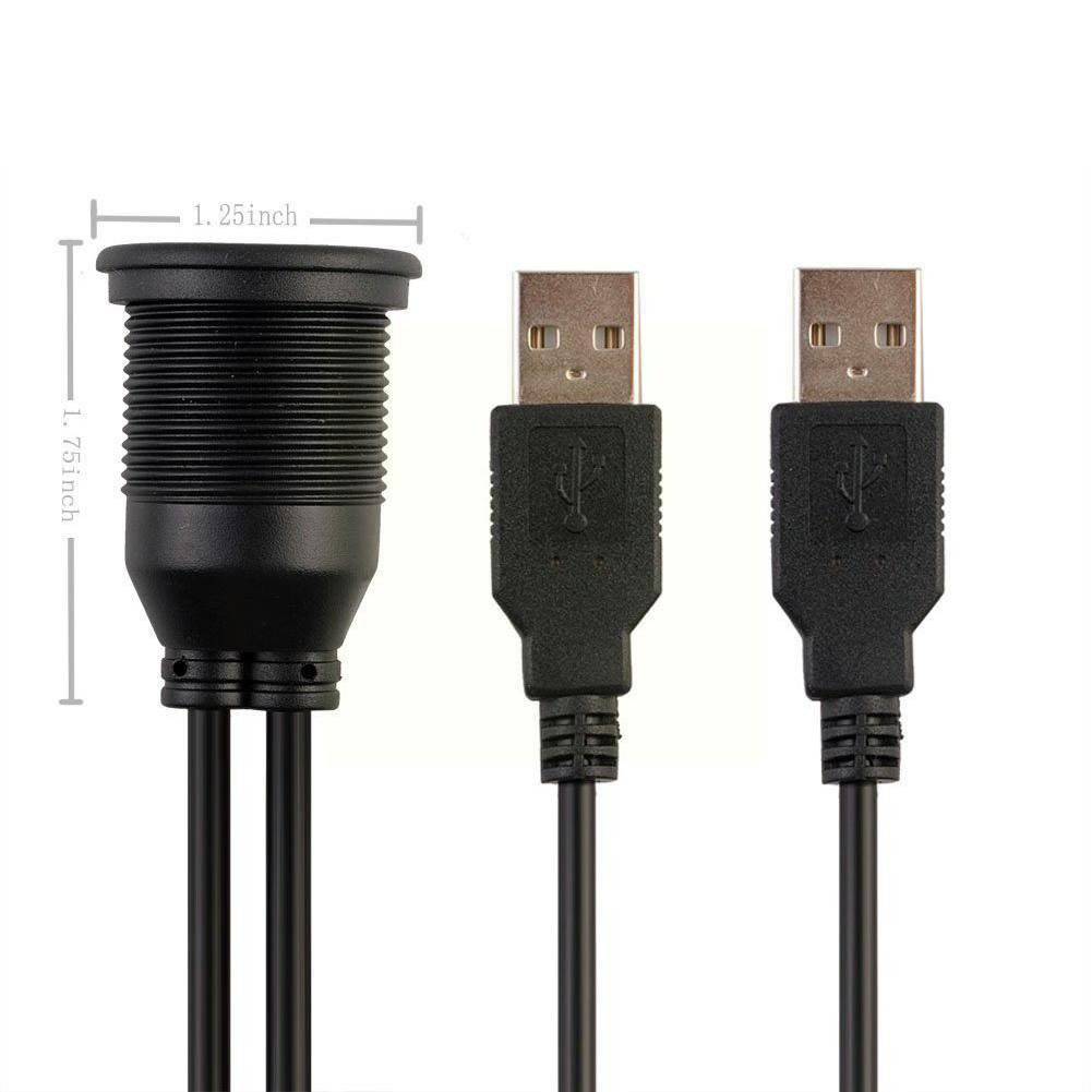 Inbouw Dubbele USB Verlangkabel Convertor 100cm Midden Console Dashboard Dop met Wartel voor Autoradio naar Telefoon [Snoer Interface]