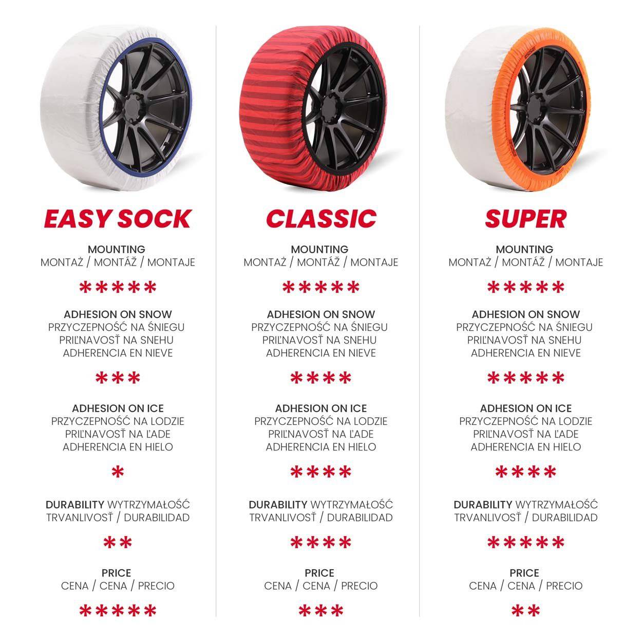 Isse 58 S Textiel sneeuwkettingen voor Autobanden - Classic Rood Gestreept 2 stuks (set)