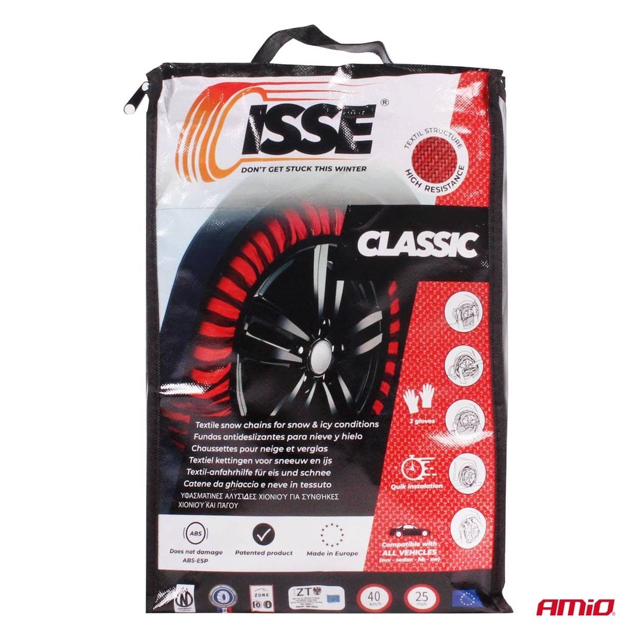 Isse 62 M Textiel sneeuwkettingen voor Autobanden - Classic Rood Gestreept 2 stuks (set)