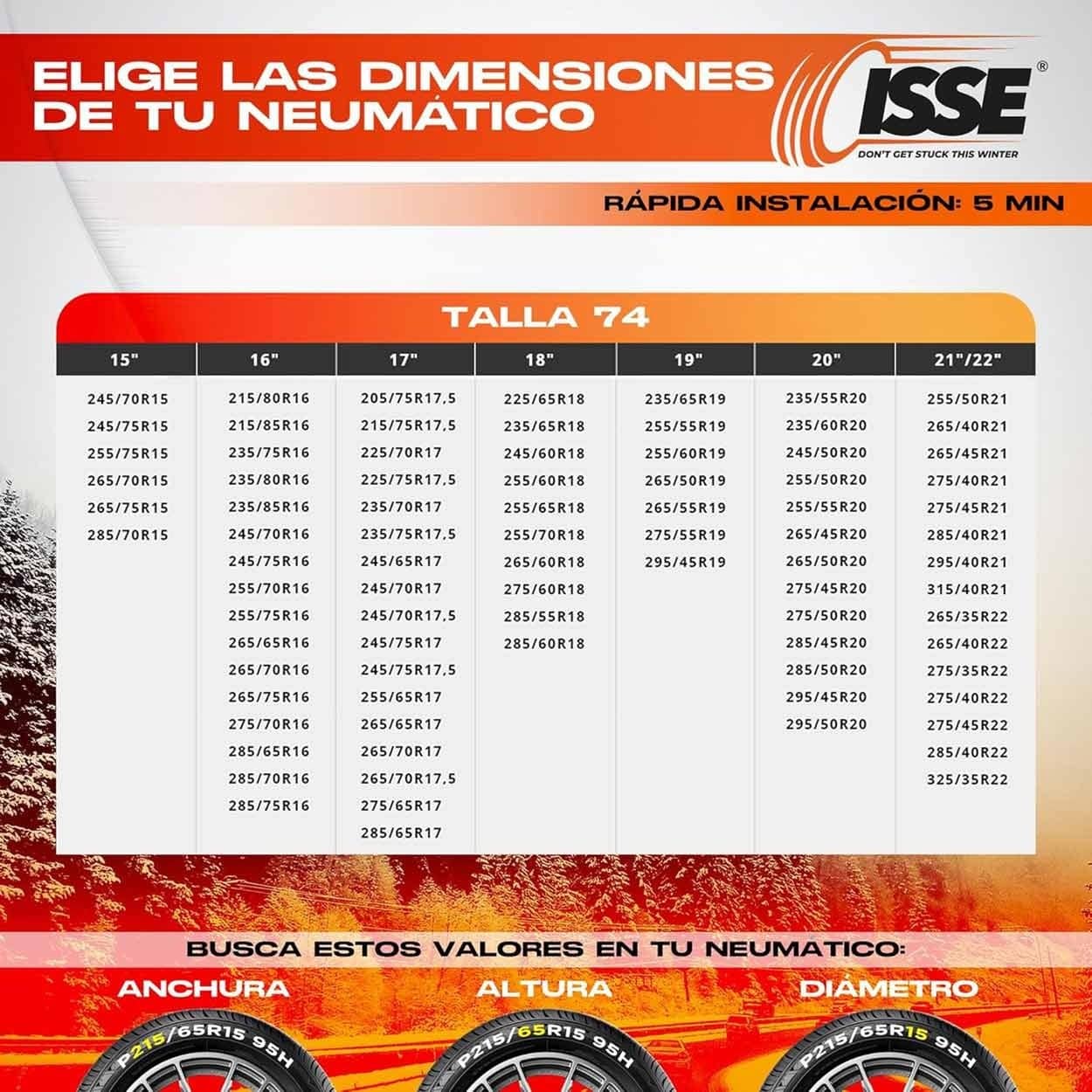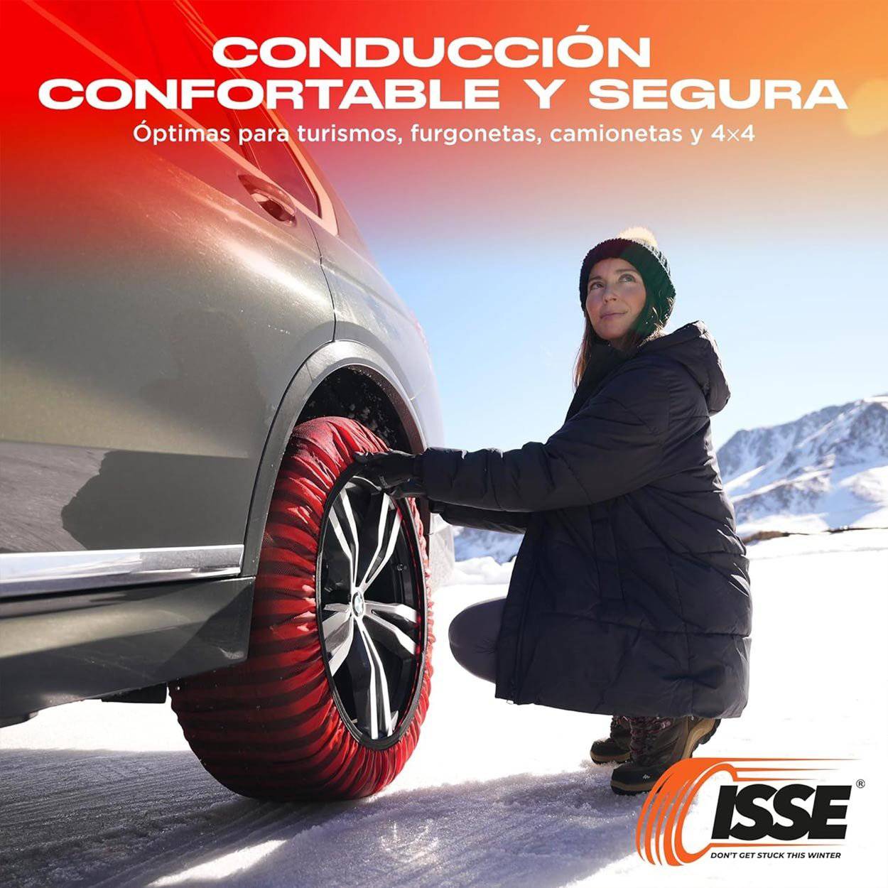De Isse Classic textiele sneeuwkettingen in XXLformaat bieden krachtige grip voor voertuigen met grotere bandenmaat 74. Deze sneeuwkettingen zijn ontworpen voor de zwaarste winterse omstandigheden en zorgen voor verbeterde stabiliteit op sneeuw en ijs. Het stevige, duurzame materiaal is flexibel en eenvoudig te installeren. De opvallende rode gestreepte kleur maakt de kettingen goed zichtbaar, zelfs in slechte weersomstandigheden. De set bevat twee kettingen die perfect passen bij voertuigen met bandenmaat 74.