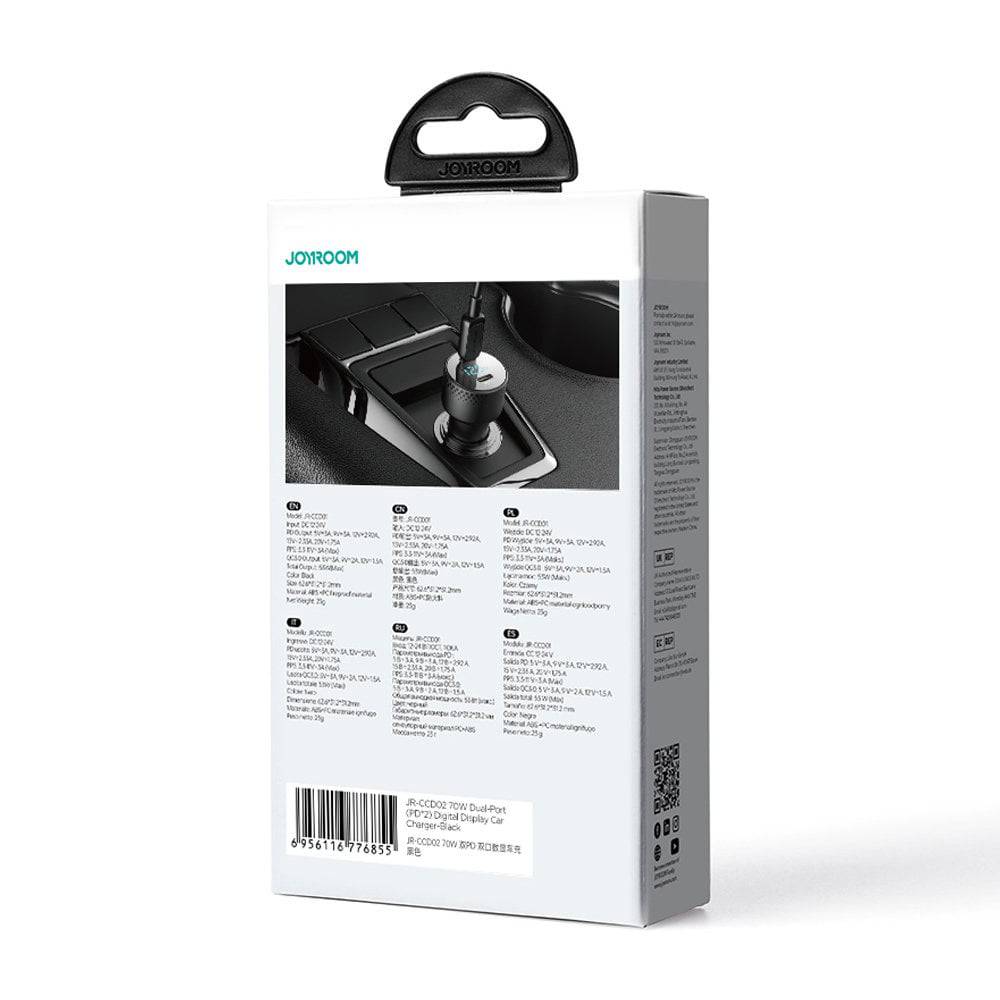 Joyroom Autolader Snellader 2x USBC 70W met LED Display Zwart