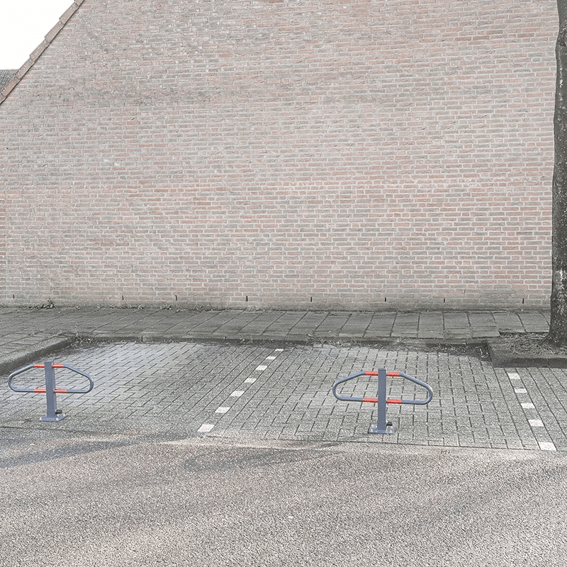 1. Opklapbaar Ontwerp: Deze parkeerbeugel is inklapbaar, waardoor je de flexibiliteit hebt om de toegang tot je parkeerplaats te reguleren. Gebruiksgemak staat voorop met het eenvoudige opklapmechanisme.