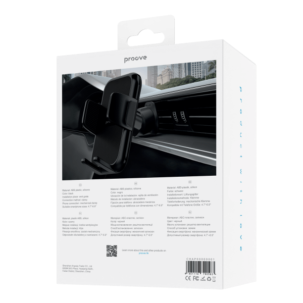 De Proove Alpha autohouder biedt uitstekende veelzijdigheid en comfort door smartphones met een schermdiagonaal van 4,7 tot 6,9 inch te ondersteunen, wat hem geschikt maakt voor vrijwel elk smartphone model op de markt. Dankzij de bevestiging aan het ventilatierooster is de installatie snel en eenvoudig, zodat je je volledig kunt concentreren op de weg en je navigatie.