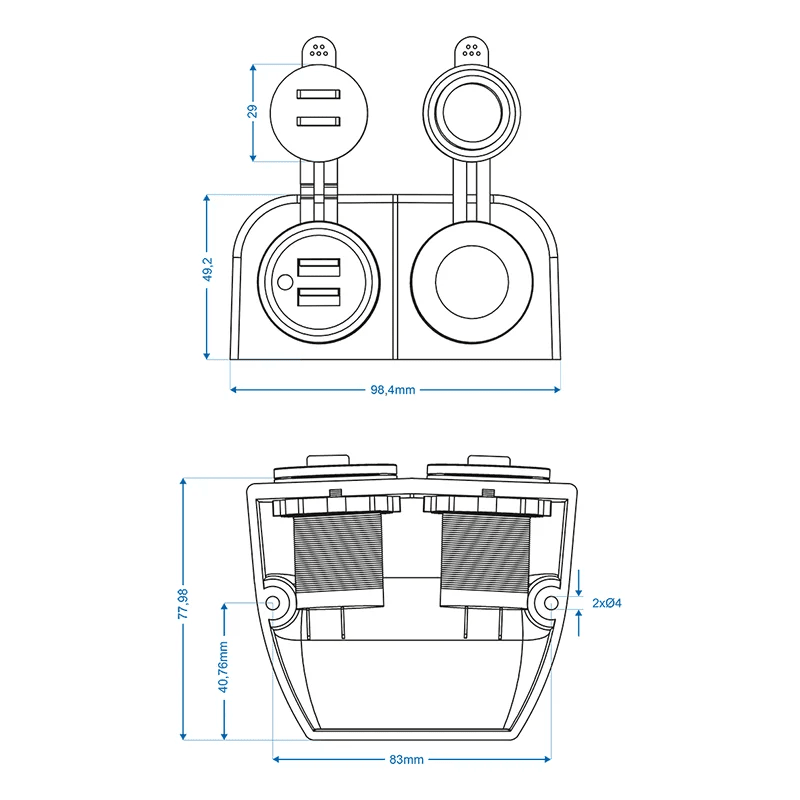 Dankzij het opbouwontwerp is deze kit eenvoudig te installeren op een gewenste locatie in je voertuig. Dit maakt het een flexibele en handige oplossing voor wie onderweg stroomvoorziening en oplaadmogelijkheden nodig heeft.