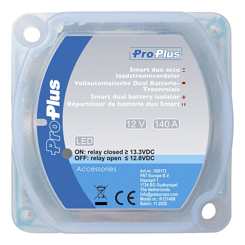 De Smart Duo Accu Laadstroomverdeler 12V/140A is een volautomatisch systeem dat de oplaadstroom verdeelt tussen twee 12V accu's, ideaal voor voertuigen en vaartuigen met dubbele accupakketten. Met een belastingcapaciteit van 140A en actieve oplaadregeling zorgt deze laadstroomverdeler voor een betrouwbare en efficiënte stroomvoorziening, zonder dat u zich zorgen hoeft te maken over handmatige aanpassingen.