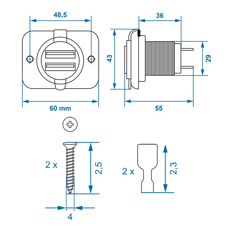 ProPlus USBInbouwdoos Tweevoudig Type A 3100mA 12V/24V Laadcontactdoos met Bevestigingsmateriaal