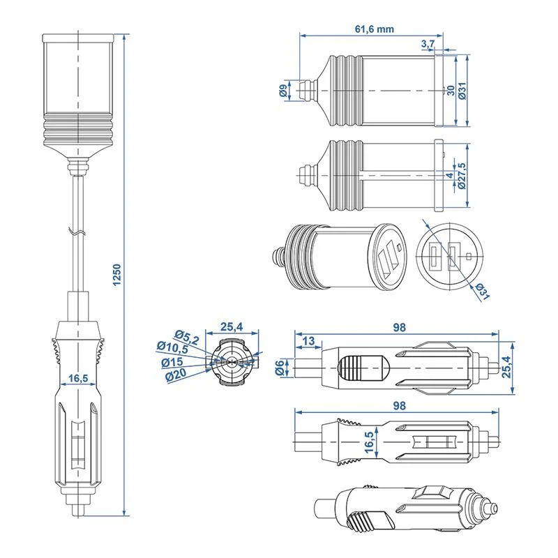 ProPlus Verlengkabel 1M met USB Lader 2-weg Type A – 12V/24V USB Splitter 3A