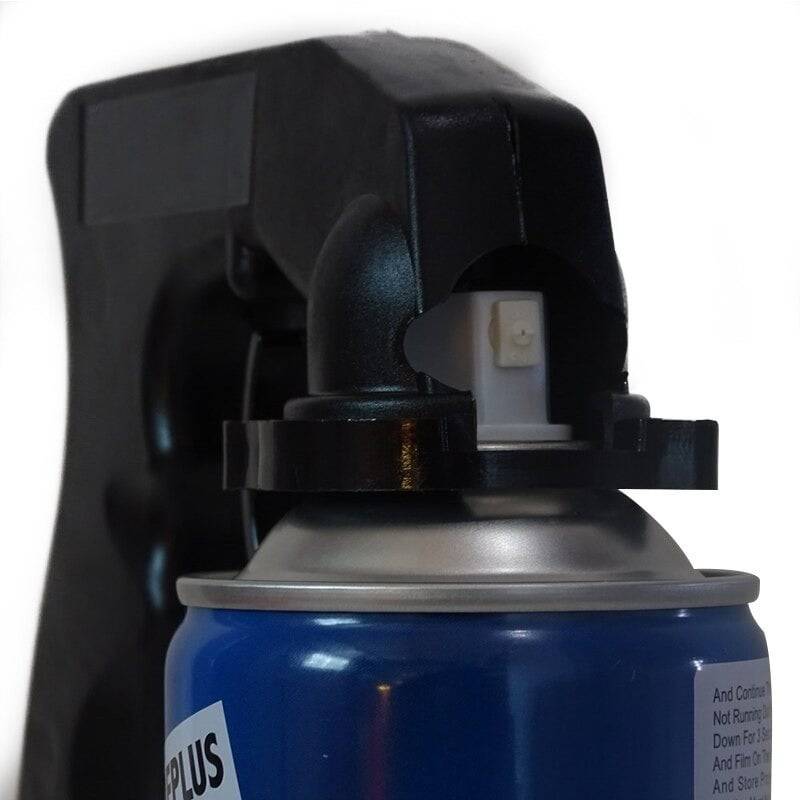 5. Controleer: Zorg ervoor dat de spuitbus recht onder het opzetstuk hangt en stevig vastzit.