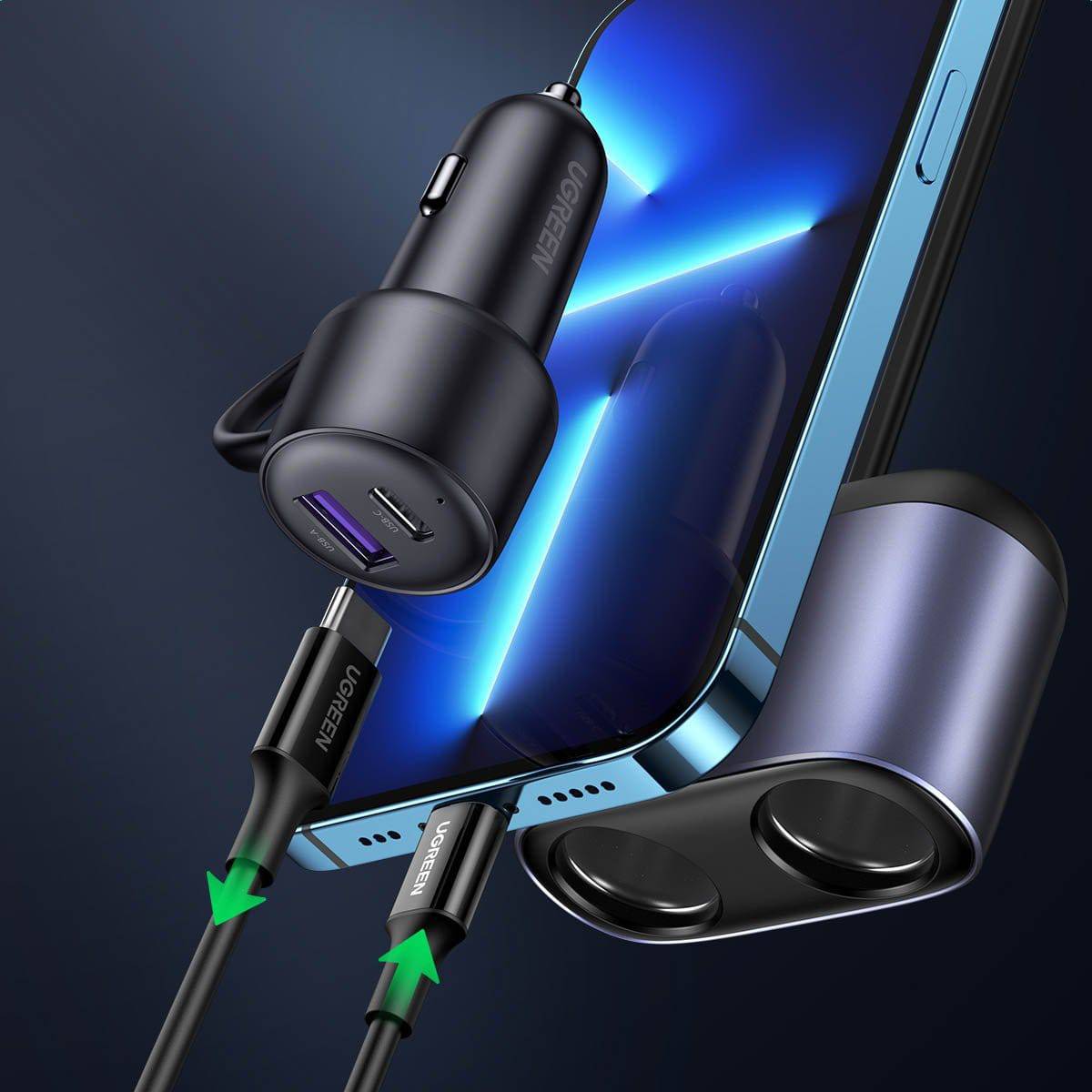 UGREEN Autolader 2x USB / 2x Sigarettenaansteker Splitter Zwart [1x USB-C & 1x USB-A]