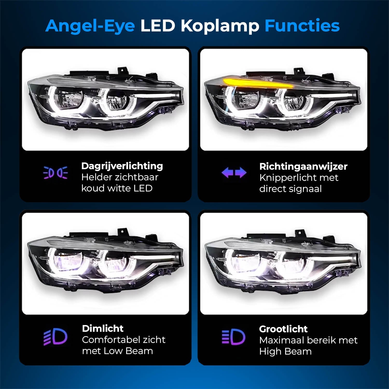 Met LED Projector Koplamp Angel Eye voor BMW 3 Serie F30 verbeter je zowel de uitstraling van je auto als de veiligheid en rijervaring onder alle omstandigheden.