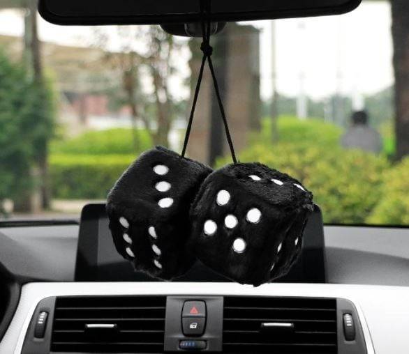 Twee leuke retro dobbelsteentjes voor aan de binnen achteruitkijk spiegel. Deze welbekende, unieke hangers, zijn gemaakt van een lekker zacht dons stofje en geven een leuke uitstraling aan uw interieur. Hang ze gemakkelijk op aan je spiegel of plak ze met de inbegrepen zuignap op het raam.